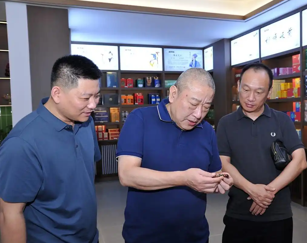 在刘东峰董事长的全程陪同下,刘俊董事长一行冒着酷暑,参观了华硕堂中药馆,考察了华仁医药中药饮片储运设施、药食同源产品研发与生产场所,以及金银种植基地,了解了我市中医药发展状况。